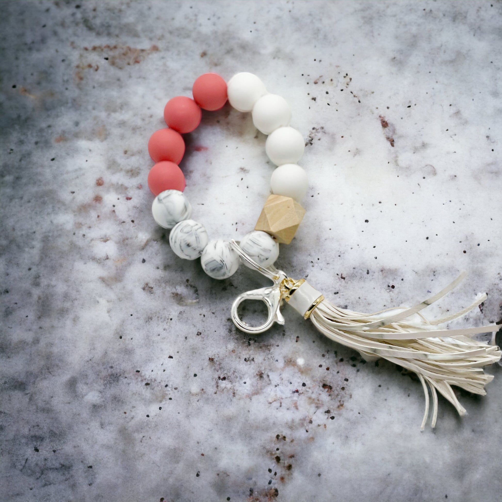 Never lose your keys again with this keychain wristlet! Silicone beads, comfortable wristlet fit. Cute and stylish.