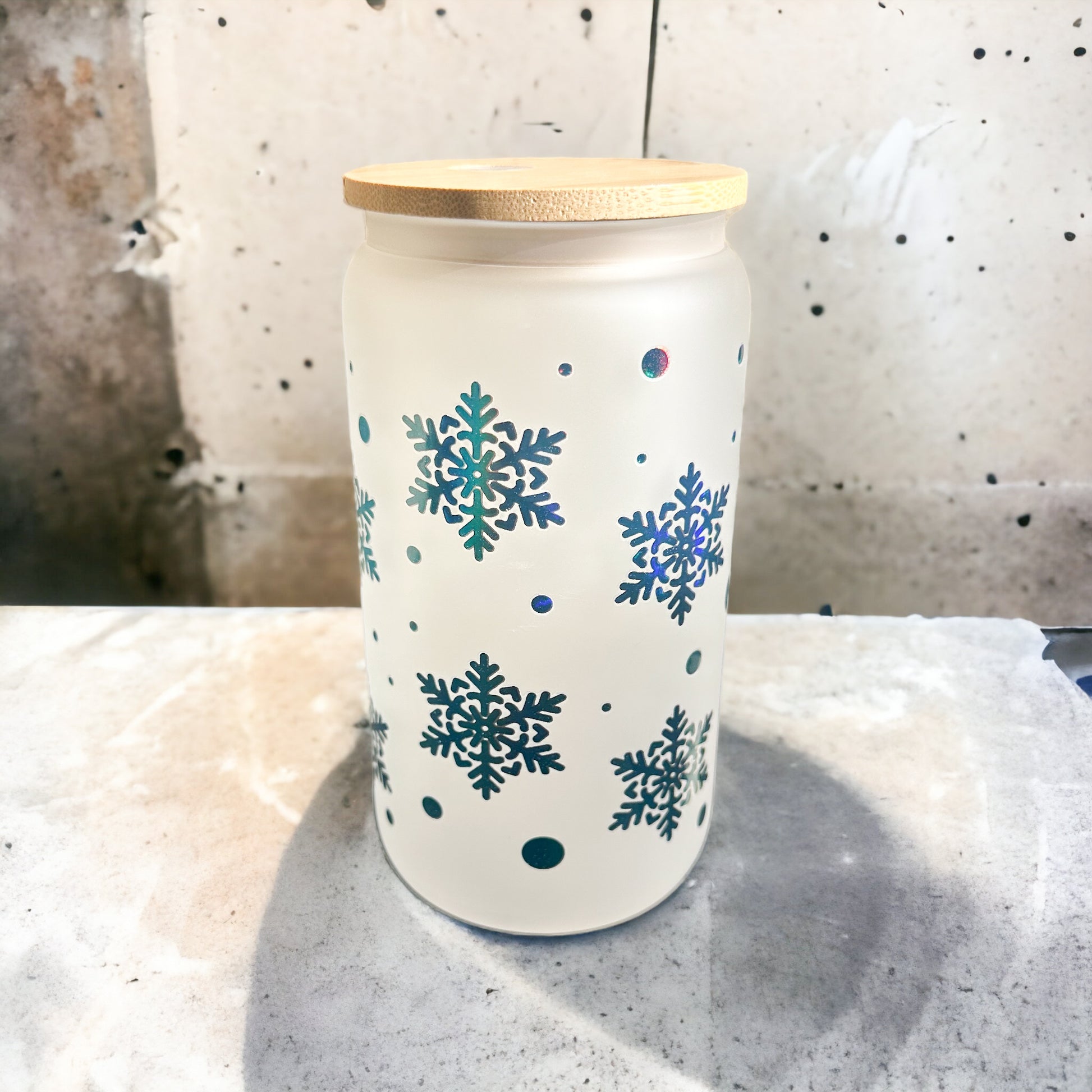 Holographic Snowflake Glass Cup